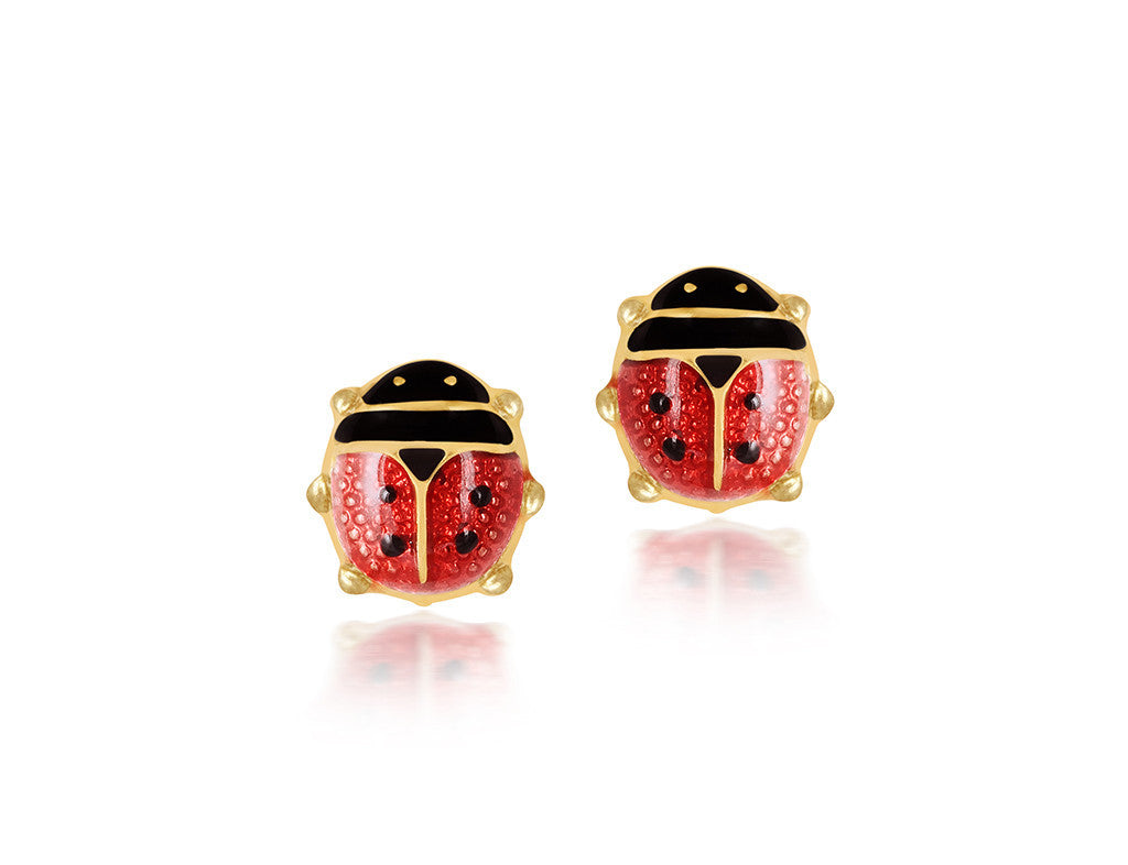These Little Lady Bug Earrings(Black and Red bold BeetleBug for adventure and fun, enamel on 18K Gold) are perfect for the girly girl. They also come in a colourful tin box with a certificate of authenticity making it a great gift.