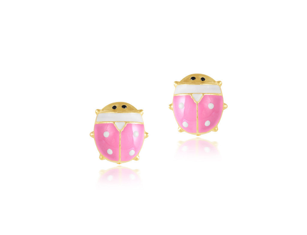 Lady Bug becomes a girl again with these pink and cream enamel earrings in 18kt gold with a glossy finish. These earrings come in a colourful tin box with an authenticity certificate making them a great gift.