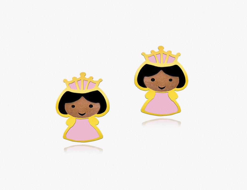 The Princess of the Faraway Castle was a beautiful little girl who had the sweetest voice. Her parents, The King and The Queen adored her, for she was the most caring princess ever. Every little girl's favourite fantasy in 18K Gold and enamel with safety screw backs.