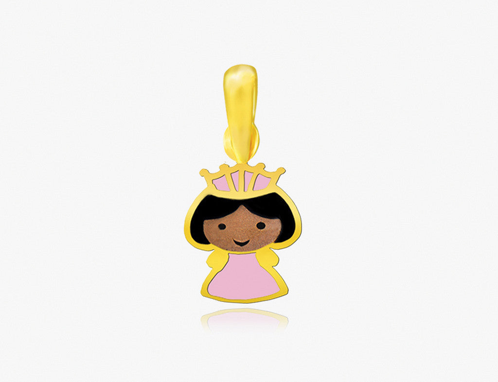 The Princess of the Faraway Castle was a beautiful little girl who had the sweetest voice. Her parents, The King and The Queen adored her, for she was the most caring princess ever. Every little girl's favourite fantasy in 18K Gold and enamel. Matching earrings also available.