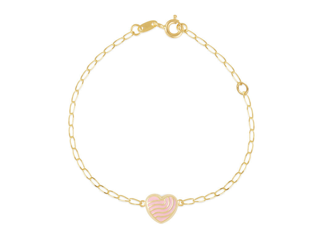 Feelings flowing through the heart in golden waves with this pink enamel bracelet on 18kt gold with a glossy finish. It comes in a colourful tin box with a certificate of authenticity making it a great gift. Matching earrings available for this collection.