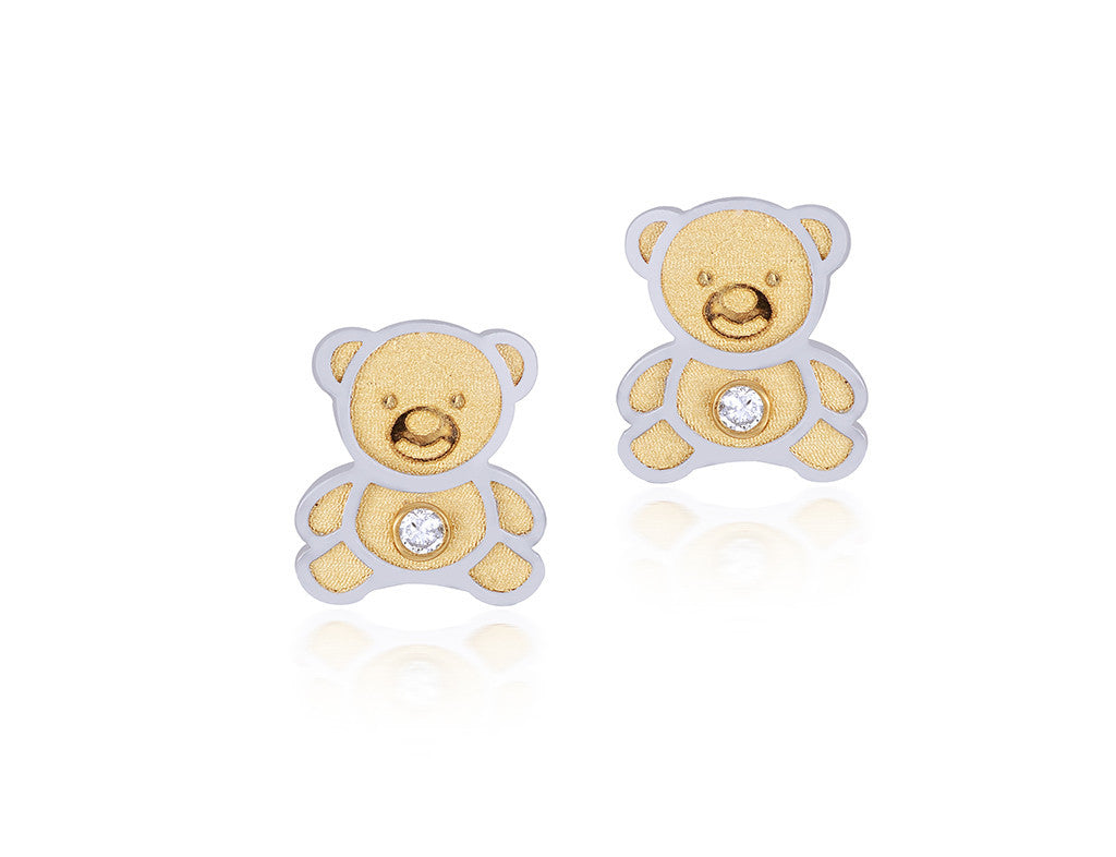 These Teddy Love Earrings have a cute and huggable teddy in matt 18 kt gold with diamonds. They also come in a colourful tin box with a certificate of authenticity making it a great gift. Matching bracelet available for this collection.