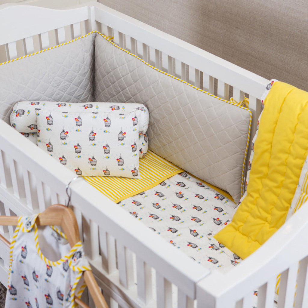 Whether your little bundle of joy is already settled in, or still on the way our supremely soft 100% cotton nursery bedding set will provide your little one blissful sleep. Our Nursery Bumper Bedding Set includes a double layered breathable cotton coverlet, a bumper, a baby pillow and two bolsters with washable covers.
