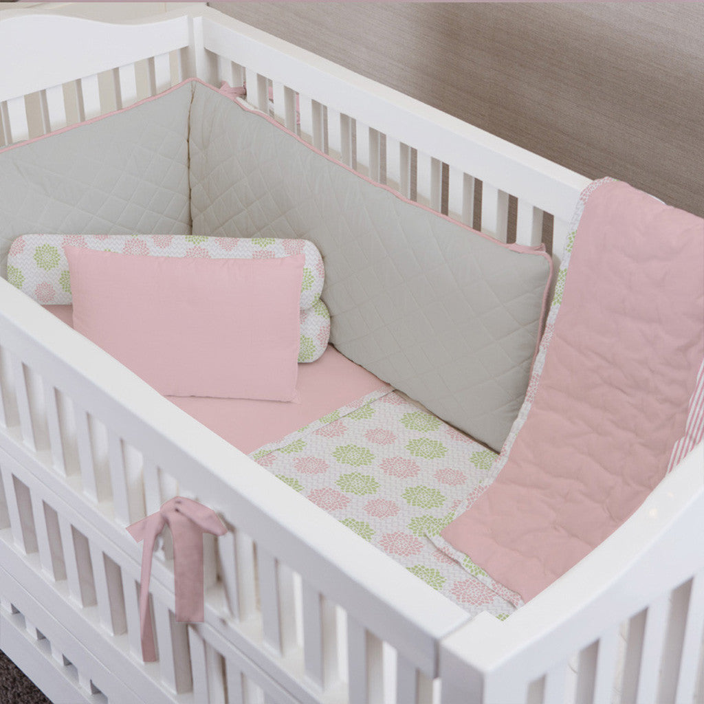 Whether your little bundle of joy is already settled in, or still on the way our supremely soft 100% cotton nursery bedding set will provide your little one blissful sleep. Our Nursery Bumper Bedding Set includes a double layered breathable cotton coverlet, a bumper, a baby pillow and two bolsters with washable covers.
